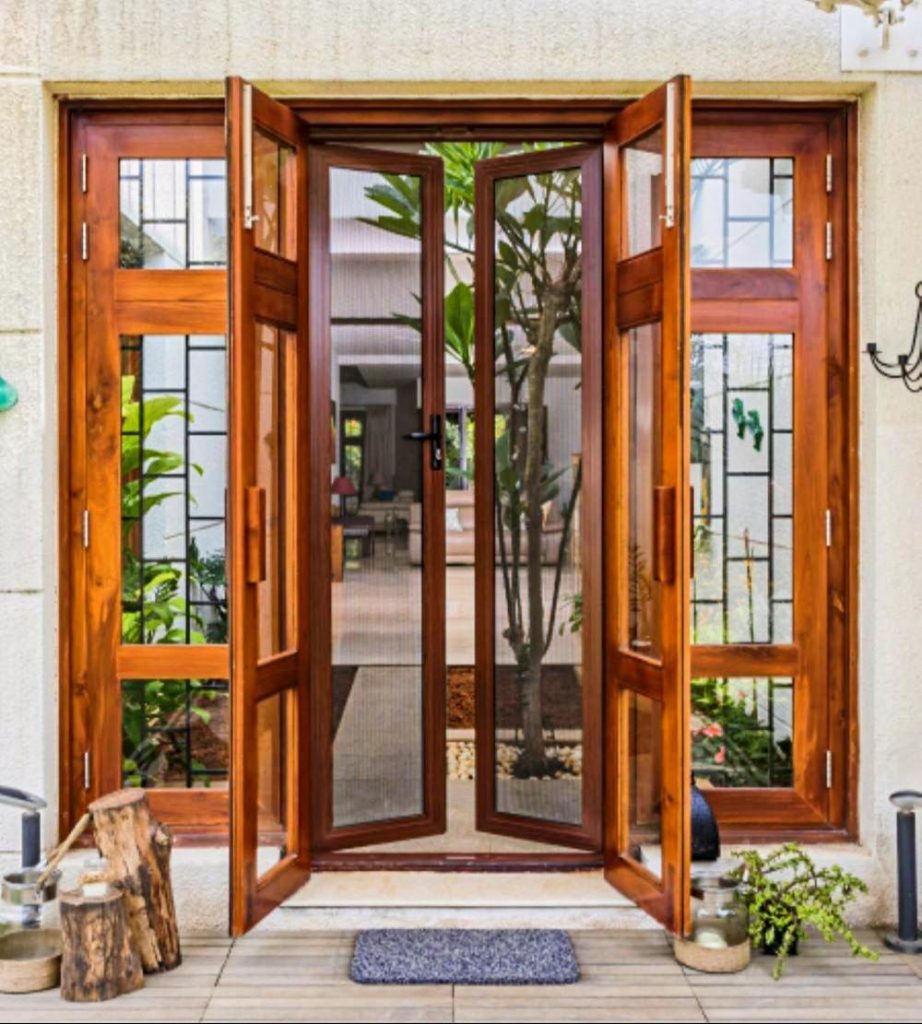 We manufacture French Doors using a variety of high-quality wood species such as Teak Wood, Meranti, Oak, Pine, Ash, Maple, and other durable hardwoods. Each frame is precisely engineered to ensure stability, weather resistance, and long-term performance. The doors can be paired with clear glass, frosted glass, toughened glass, or decorative glazing options based on the client’s preferences.